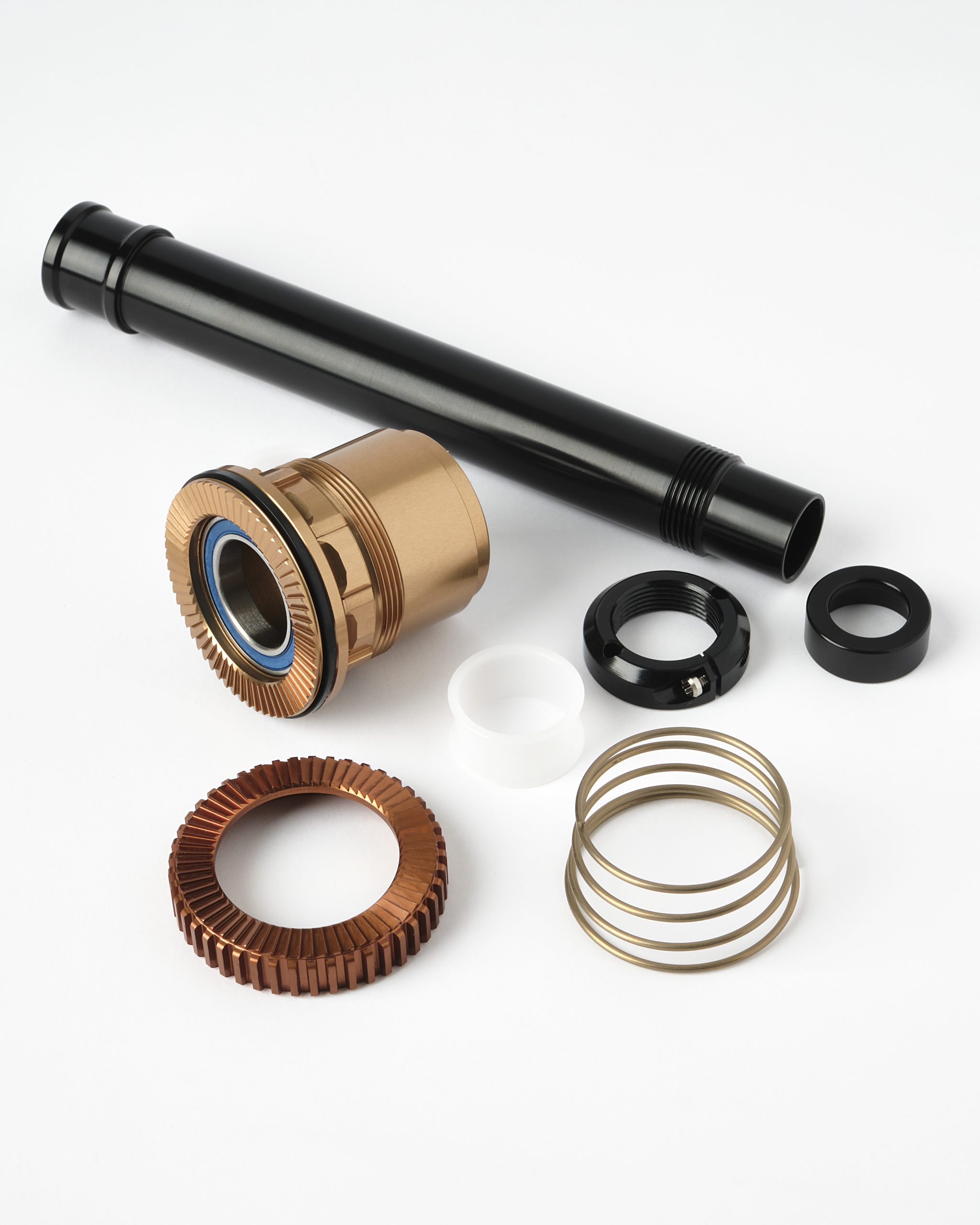 Includes 60T freehub body with ceramic bearings, V1 spacer ring, V1 spring, 60T ratchet for straight splines, axle and end caps, and Tactic Ratchet and Spline Lubricant.